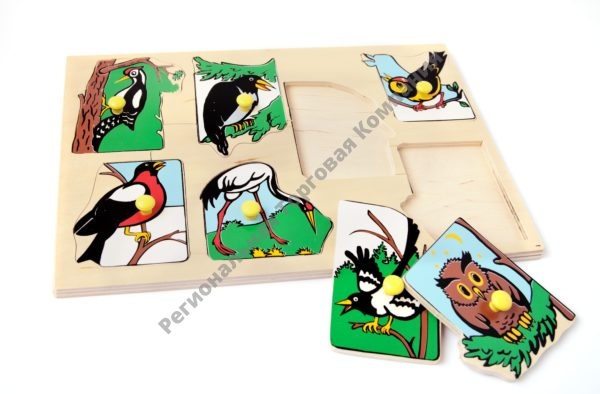 Игровое пособие представляет собой планшет размером 29,5*20,5*0,9 см, на котором находятся 7 вкладышей-«островов» с изображением птиц, населяющих Европу. На каждом вкладыше имеется ручка-кнопочка для удобства пользователей.