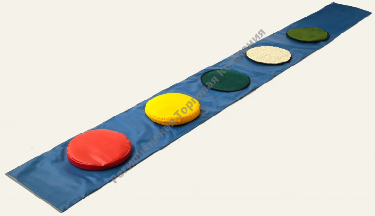 Сенсорная тропа RG042 - это дорожка, на которую с помощью липучек крепятся 5 мешочков из прочной ткани с разными наполнителями. Диаметр круга: 30 см. Ходьба по «кочкам» - мешочкам полезна для развития тактильного восприятия, координации и профилактики плоскостопия.