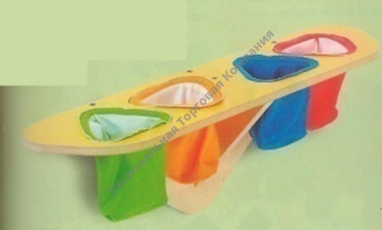 Полка с четырьмя маленькими чехлами из ткани разного цвета, в них кладуться различных мелкие предметы, которые ребенок должнен определить на ощупь. Эта игра хорошо развивает фантазию ребенка.