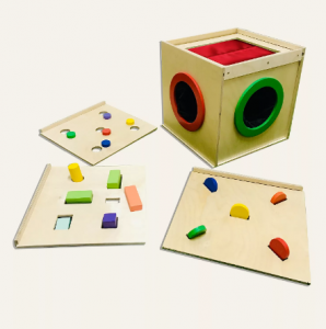 Тактильный ящик предназначен для игр и развития у ребенка логики, воображения, памяти. Ящик состоит из корпуса с дверцей, тактильными ячейками и съемными функциональными крышками. При помощи изделия, ребенок тренирует мелкую моторику рук и осязательные навыки, учится правильно соотносить размеры предметов, изучать цвета.