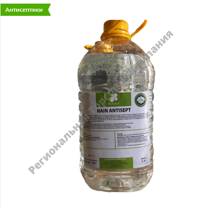 Моющее средство с антибактериальным эффектом «RAIN ANTISEPT» предназначено для для проведения санитарной обработки поверхностей производственных, санитарно-бытовых, складских и служебных помещений, а также для антисептической обработки рук.