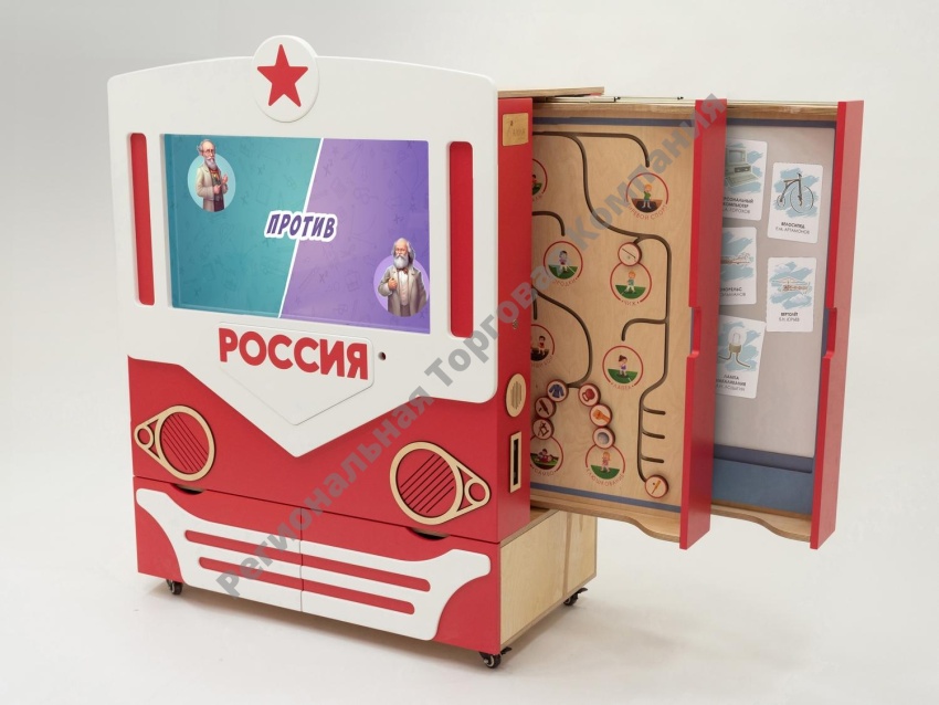 Магнитная доска «Сделано в России!» Магнитно-маркерная поверхность, на которую крепятся магнитные карточки с рисунками изобретений, сделанных в России в разные периоды истории.