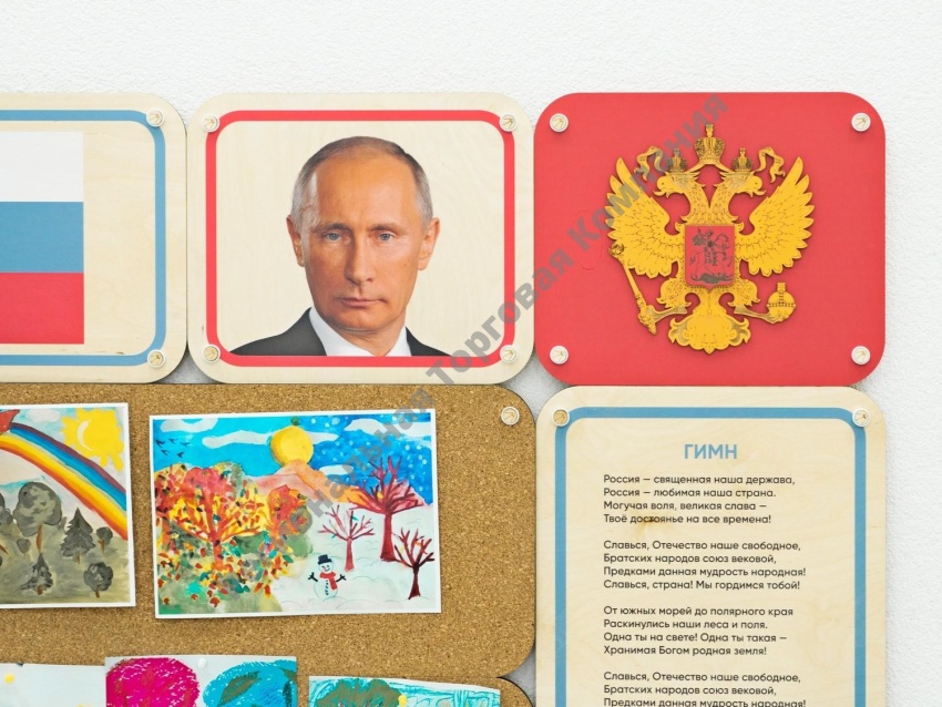 Акриловые рамки служат для размещения полезной информации: портрет губернатора, герб и флаг региона, национальный праздник или историческая личность, которую изучают юные воспитанники. На пустой пробковой панели можно легко размещать работы детей или распечатанный наглядный материал к уроку.