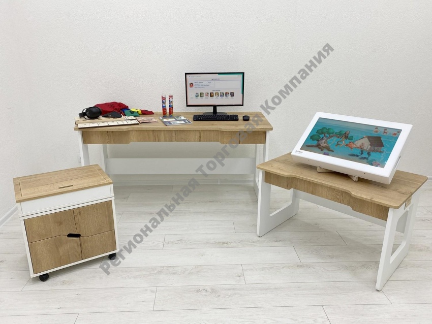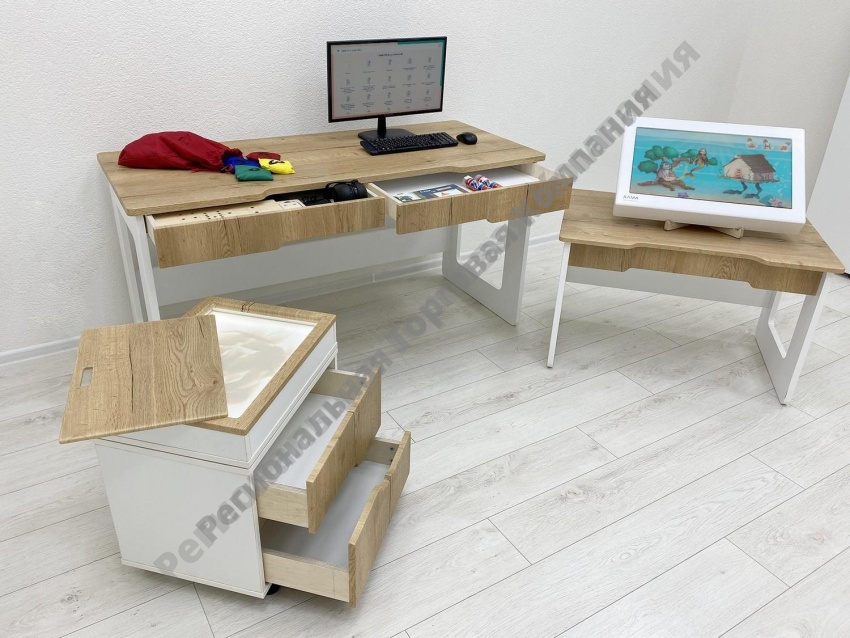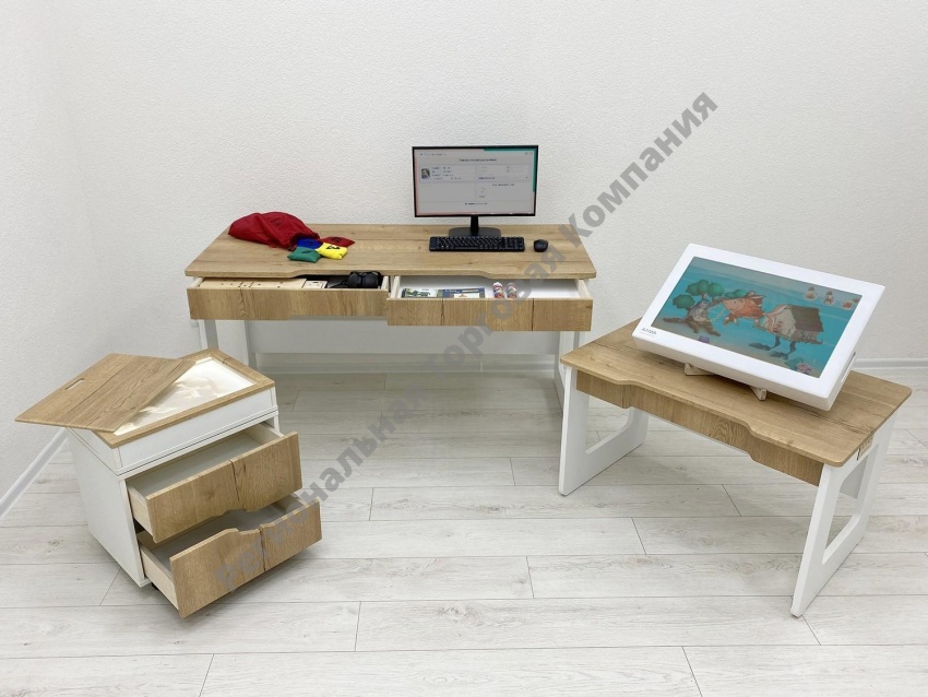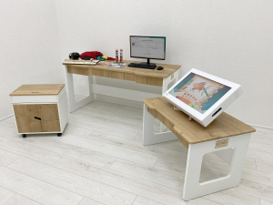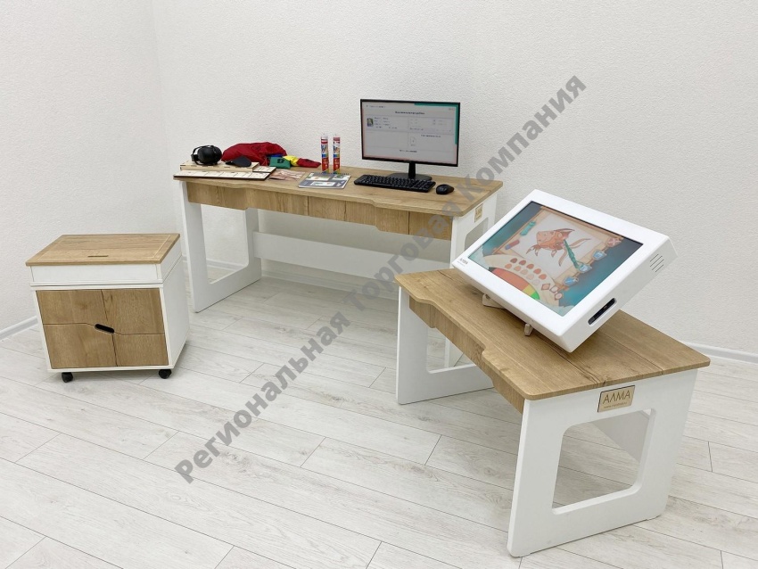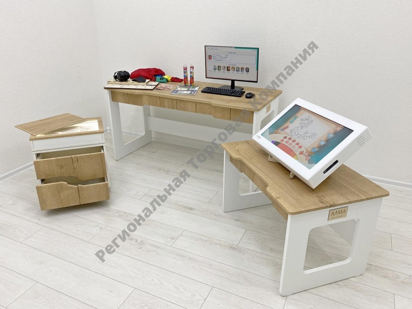 АЛМА ПРО – это профессиональный стол с отдельным рабочим местом для специалиста психолога-дефектолога.