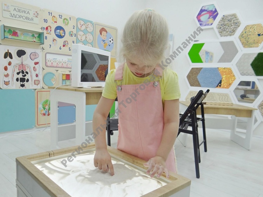 Световой стол с песком позволит гармонизировать психоэмоциональное состояние ребенка, занятия положительно влияют на развитие мелкой моторики, сенсорных и тактильных восприятий, речи, мышления, интеллекта, фантазии и воображения.