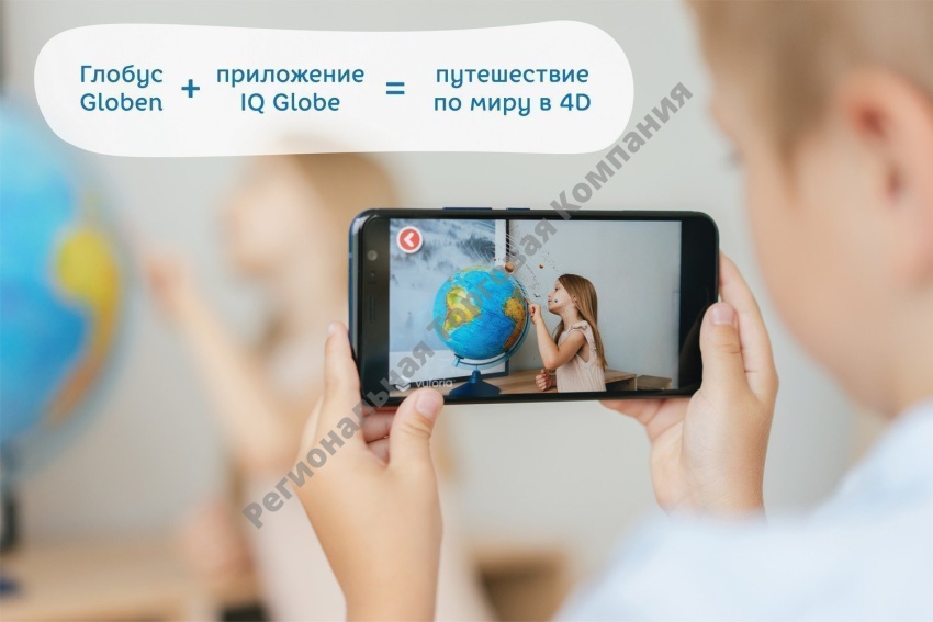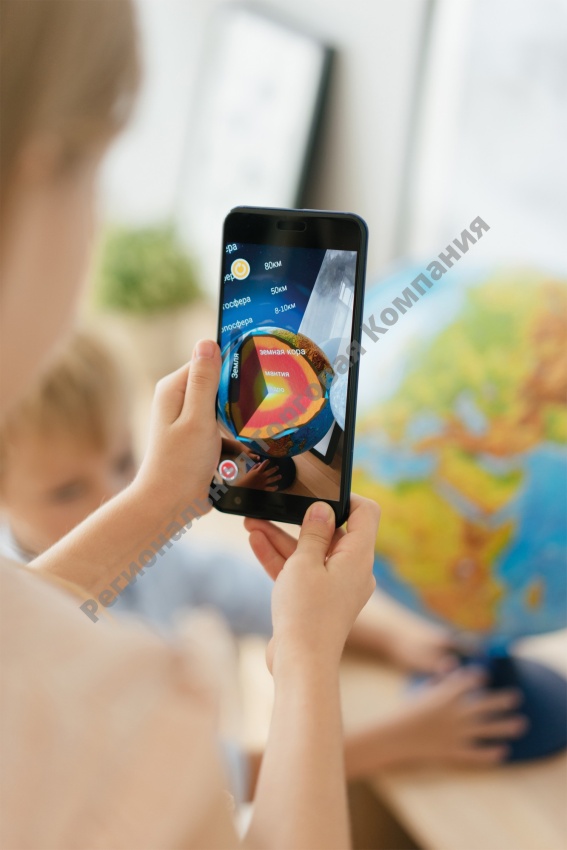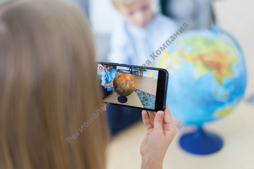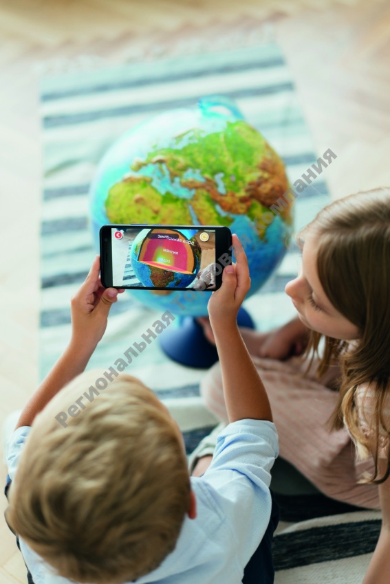 Благодаря специальному бесплатному приложению и функции 3D AR Технология глобус "подключается" к планшету или смартфону.