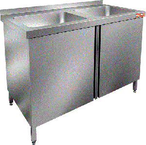 Стол с распашными дверцами и моечными ваннами HICOLD НСЗ2М-10/7Б