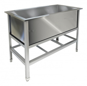 Ванна моечная BM-11/1000, 1200*600*850 - используется на предприятиях общественного питания и торговли для мытья и ополаскивания продуктов, посуды и различного инвентаря. Модель с закругленными краями оснащена регулируемыми по высоте ножками, что позволяет компенсировать неровности пола. Сварной каркас выполнен из металлического профиля толщиной 2 мм, покрытого порошковой краской, сварная мойка - из нержавеющей стали AISI 304 толщиной 0,8 мм, выпуск - из нержавеющей стали.