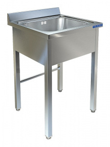 Одна цельнотянутая ёмкость размером 500х500х300 из нержавеющей стали марки AISI 304 толщиной 1мм, обнижение 15 мм. Объемный пристенный борт. Фартук с 3-х сторон высотой 285 мм. Каркас сварной из трубы 40х40 нержавеющей стали марки AISI 430 толщиной 1,2мм, с тыловой части установлены две перемычки для жесткости. Ванна комплектуется выпуском с нержавеющей решеткой и механическим запорным клапаном, диаметр выпуска 90мм, диаметр подключаемого сифона 50мм, перелив, регулируемые опоры. На дно ванны нанесена виброшумоизоляция. Ванна поставляется в собранном виде.