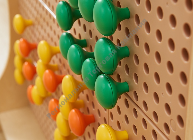 Набор состоит из 128 разноцветных колышек в 8 цветах (фиолетовый, зеленый, синий, белый, оранжевый, желтый, черный, красный). Являются дополнением к STEM стене, как к стационарной, так и передвижной. На тыльной стороне расположен штифт, при помощи которого производится крепление к панелям (STEM стены). Могут быть использованы с резинками для создания различных форм и для подвешивания вещей. Изготовлены из водо-и УФ-стойких материалов, устойчивы к выцветанию и растрескиванию на солнце.