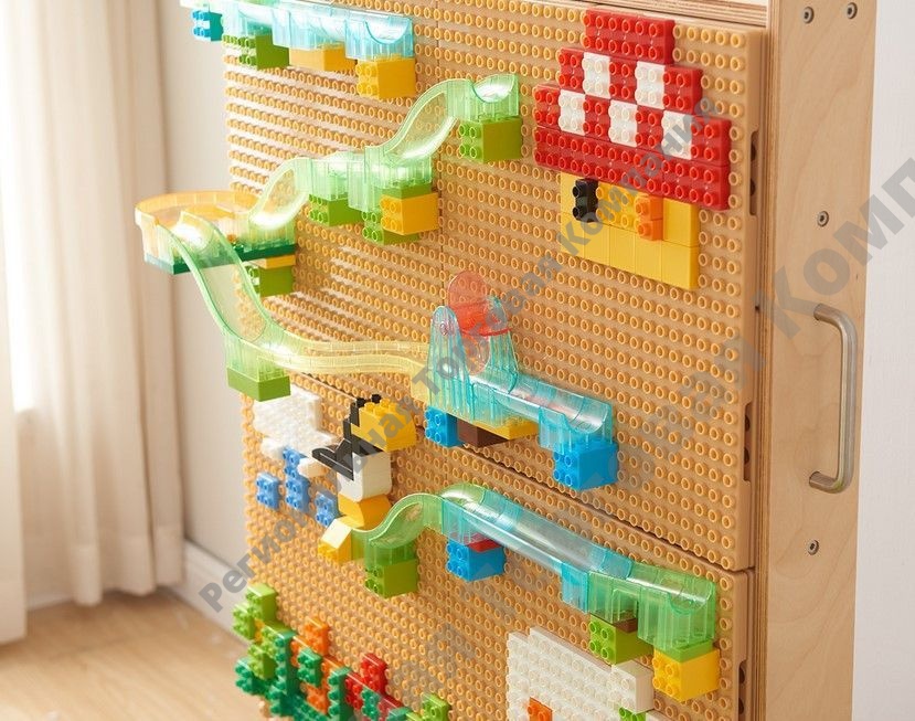 Игровой набор состоит из 563 блоков и комплектующих к ним, является дополнением к STEM стене, как к стационарной, так и передвижной. Блоки фиксируются на стене при помощи пластикового основания. Совместимы с деталями из Lego Duplo.