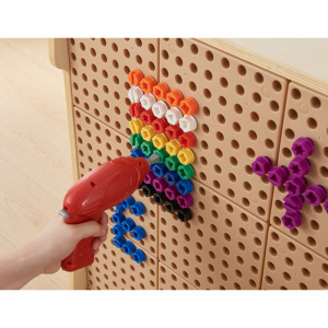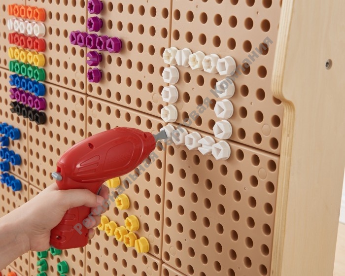Набор состоит из 512 разноцветных винтов в 8 цветах (красный, оранжевый, черный, желтый, синий, зеленый, фиолетовый, белый), имеющих на шляпке шлицы 5 разных геометрических форм. Являются дополнением к STEM стене как к стационарной, так и передвижной. Винты могут быть закреплены на стене либо вручную, или с помощью ручного электроинструмента. Изготовлены из водо -и УФ-стойких материалов, устойчивы к выцветанию и растрескиванию на солнце. Идеально подходит как для внутреннего, так и для наружного использования.