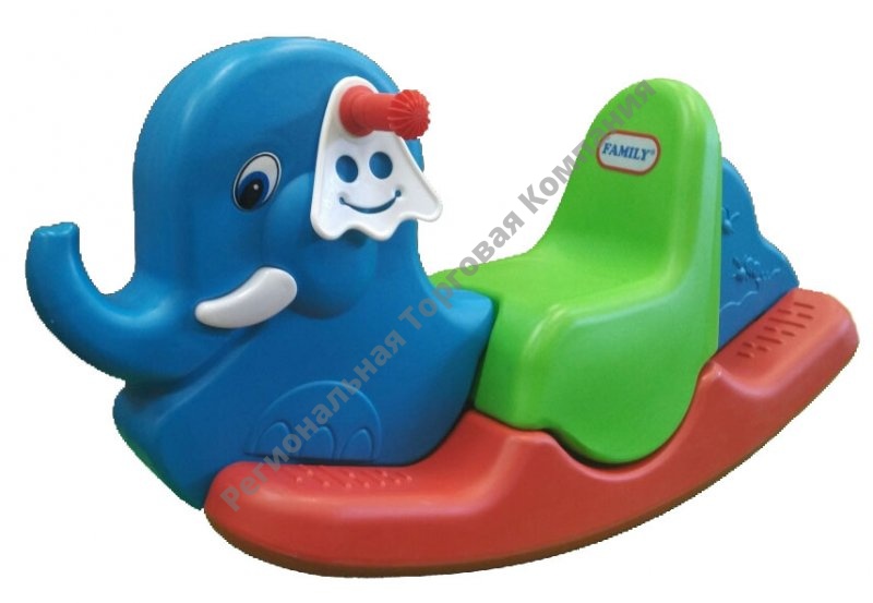 Детская игровая качалка FAMILY, стилизованная под слоненка, изготовлена из яркого, однородного и надежного пластика.